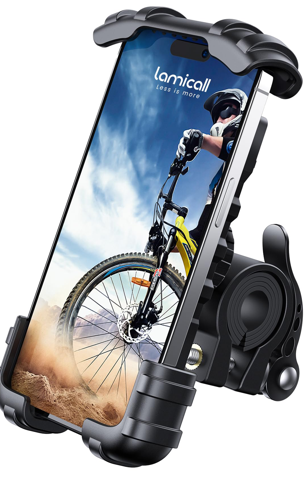 Lamicall’s heavy-duty clamp offers maximum vibration resistance, keeping your phone safely mounted on any bike or motorcycle handlebar